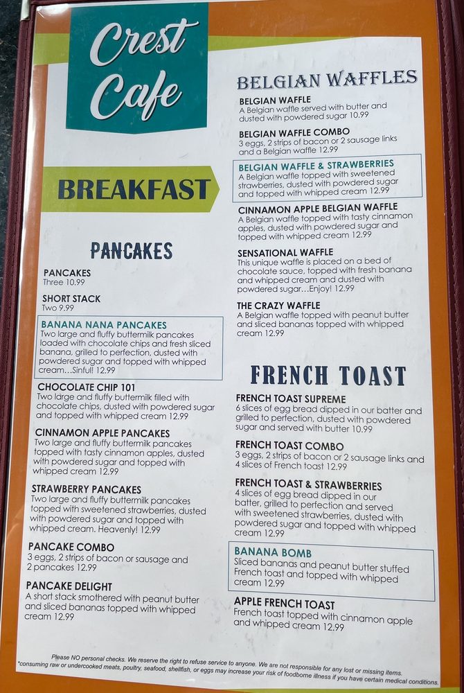A visit to Crest Cafe guarantees not just delicious meals but also a sense of community, making it an ideal spot for families and friends alike!